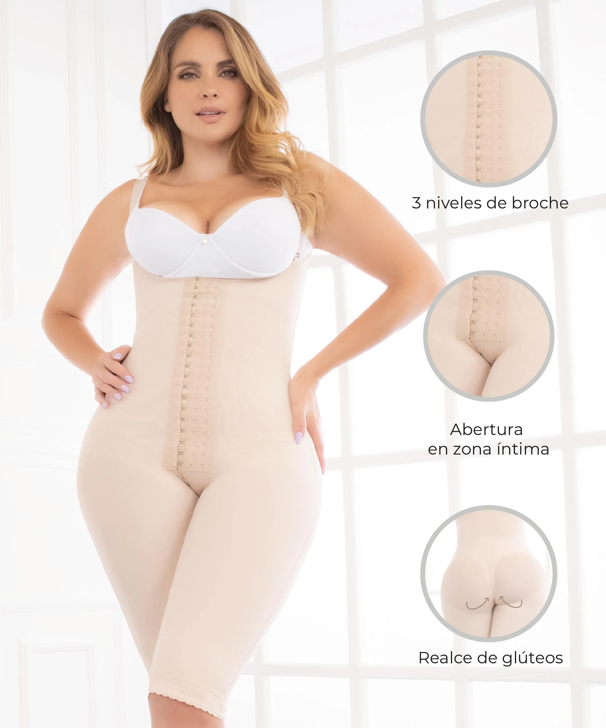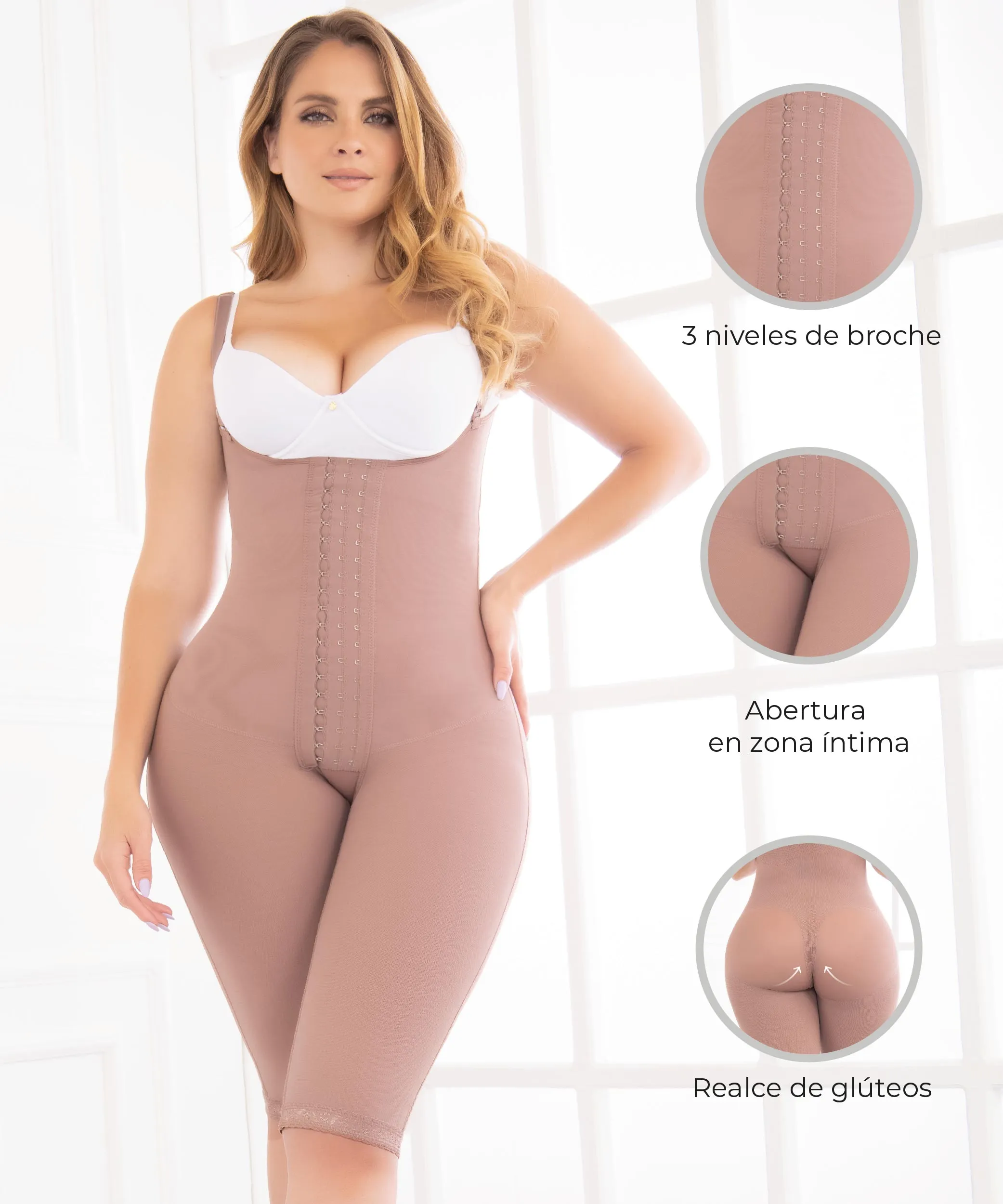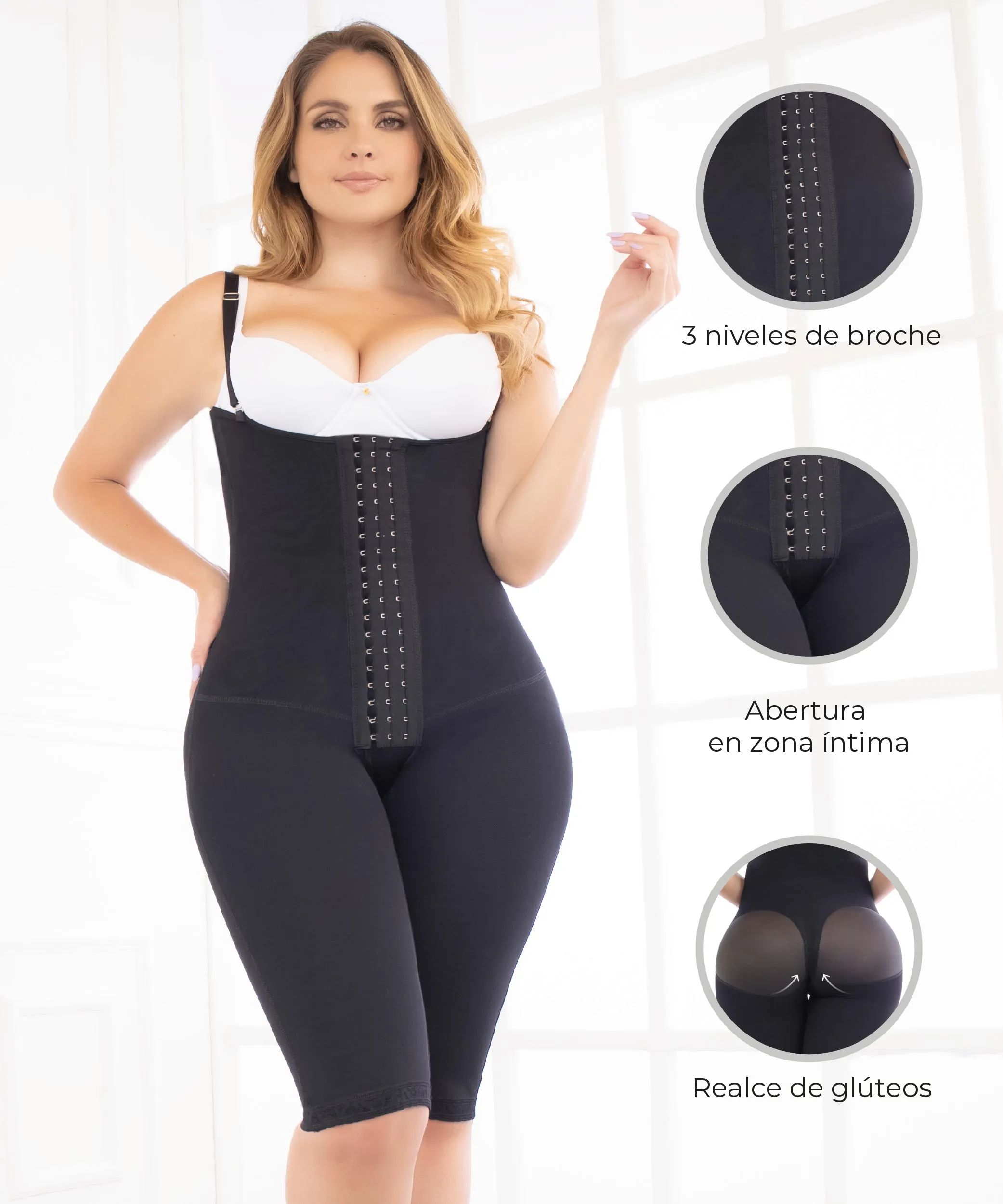 Faja postquirúrgica alta compresión a la rodilla con busto libre y realce de glúteos