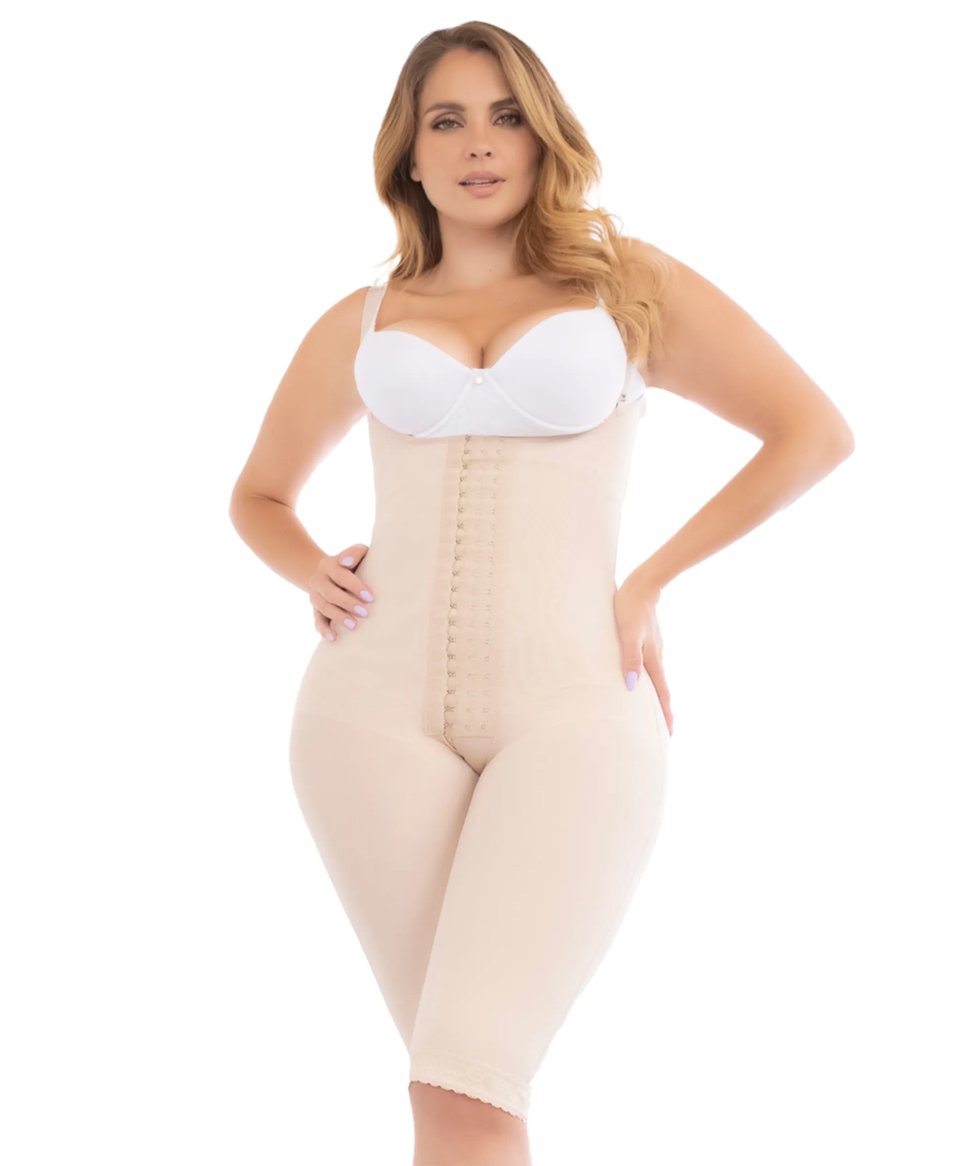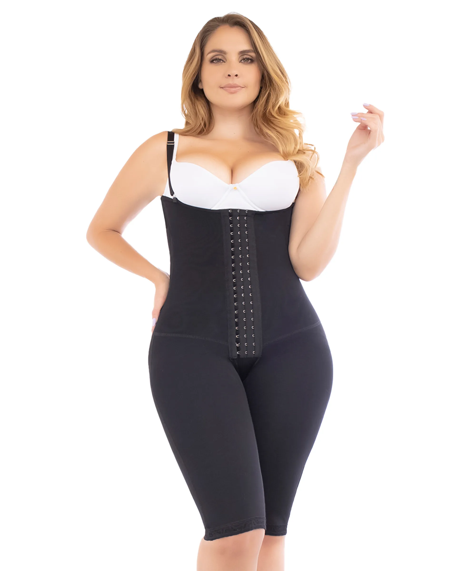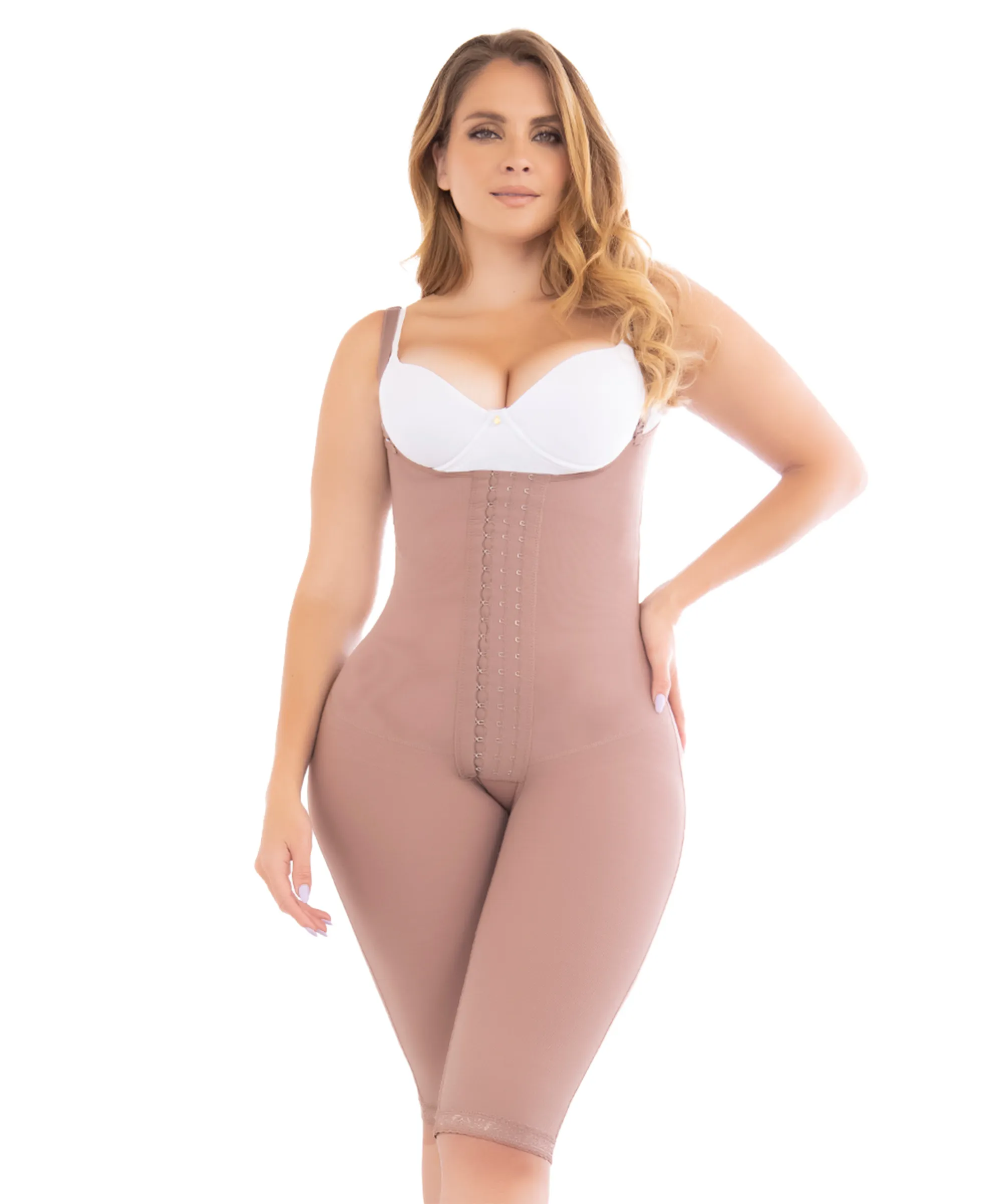 Faja postquirúrgica alta compresión a la rodilla con busto libre y realce de glúteos