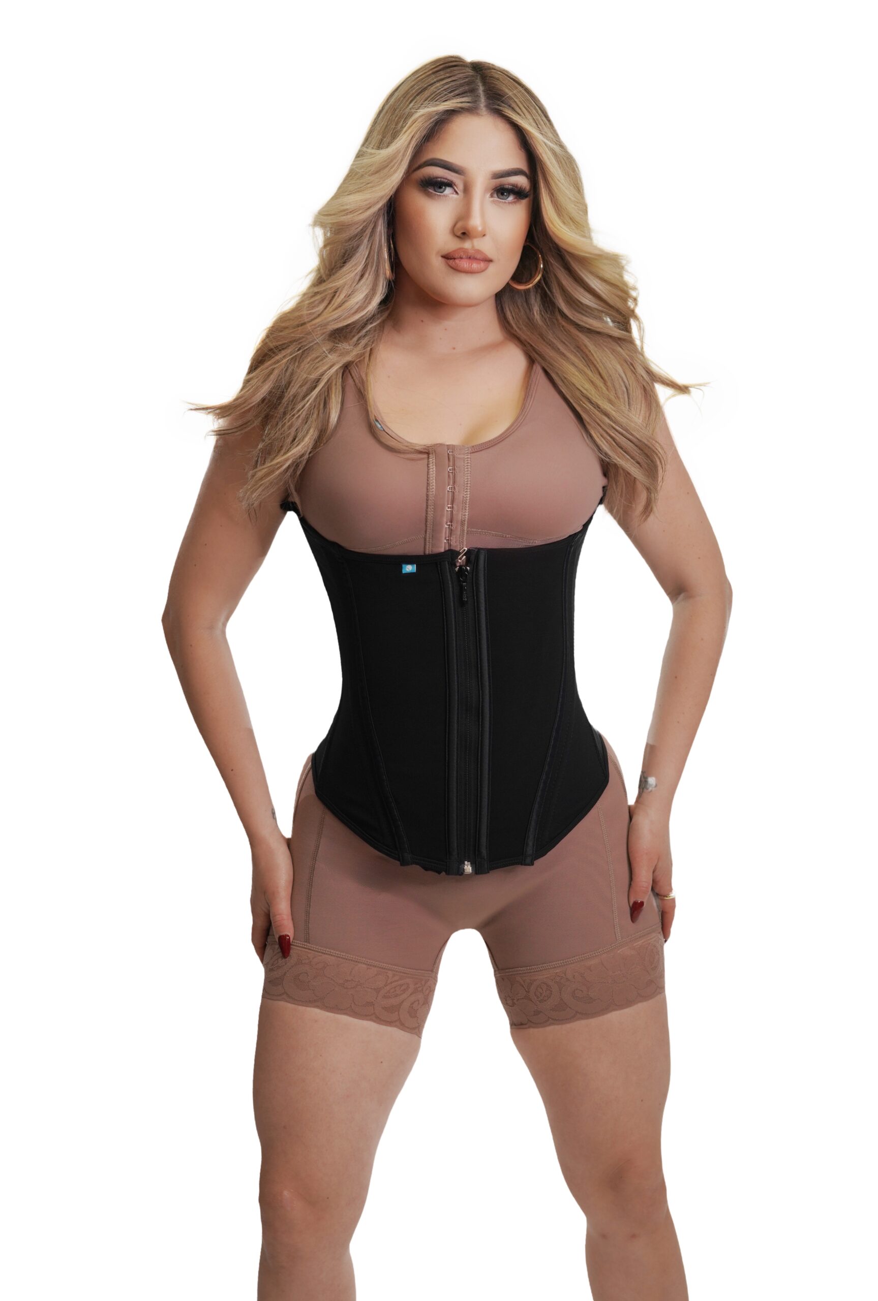 La Cinturilla Corset Strapless de Fájate es tu aliada para moldear la figura con un control alto y de forma discreta. Diseñada con un cierre frontal invisible y 4 niveles de ajuste, te permite un calce perfecto y personalizado. Sus varillas internas estilizan la zona del abdomen y la espalda, garantizando una figura más definida y elegante.