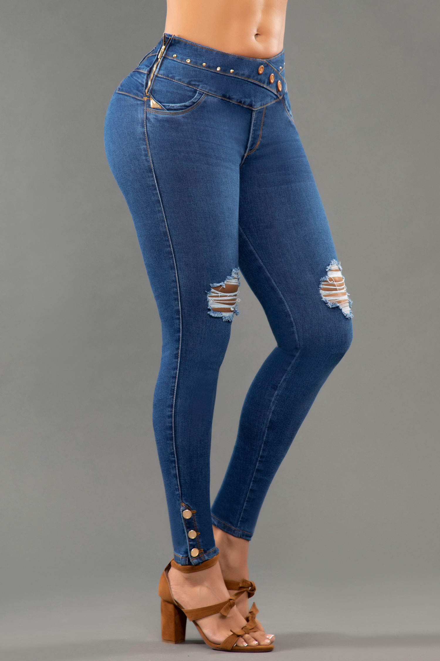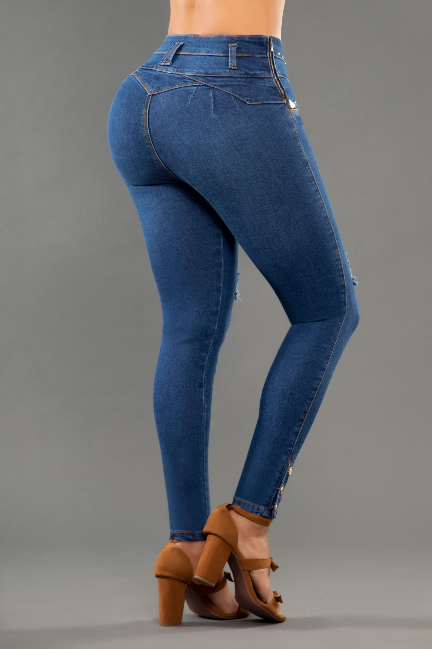 Jean bota skinny, con cierre lateral tiro medio, elaborado en índigo, sin bolsillos traseros, cuenta con el mejor confort y horma para resaltar tu figura.