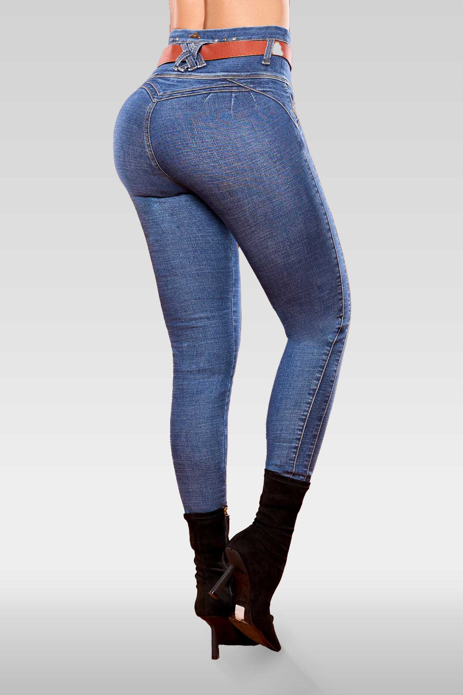 Jean bota skinny, con pretina ancha de cuatro botones tiro alto, en color azul oscuro, elaborado en índigo con contornos en contraste, sin bolsillos traseros. Cuenta con el mejor confort y horma para resaltar tu figura.