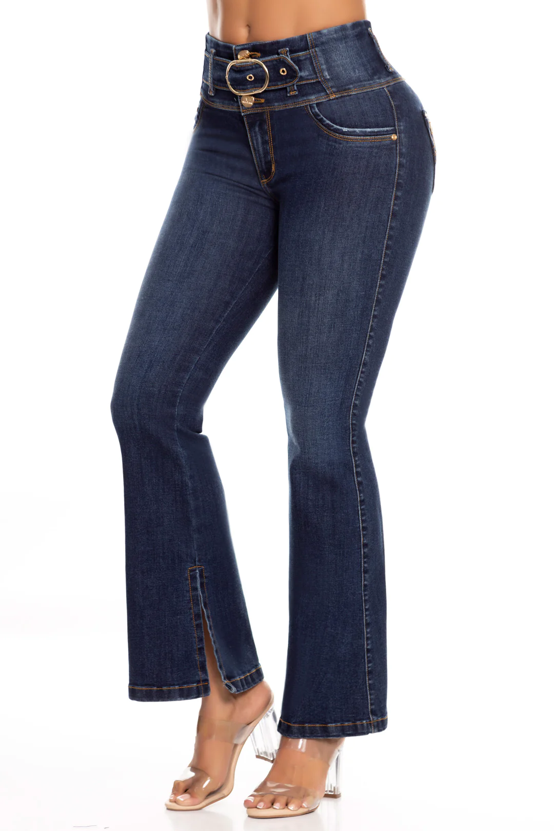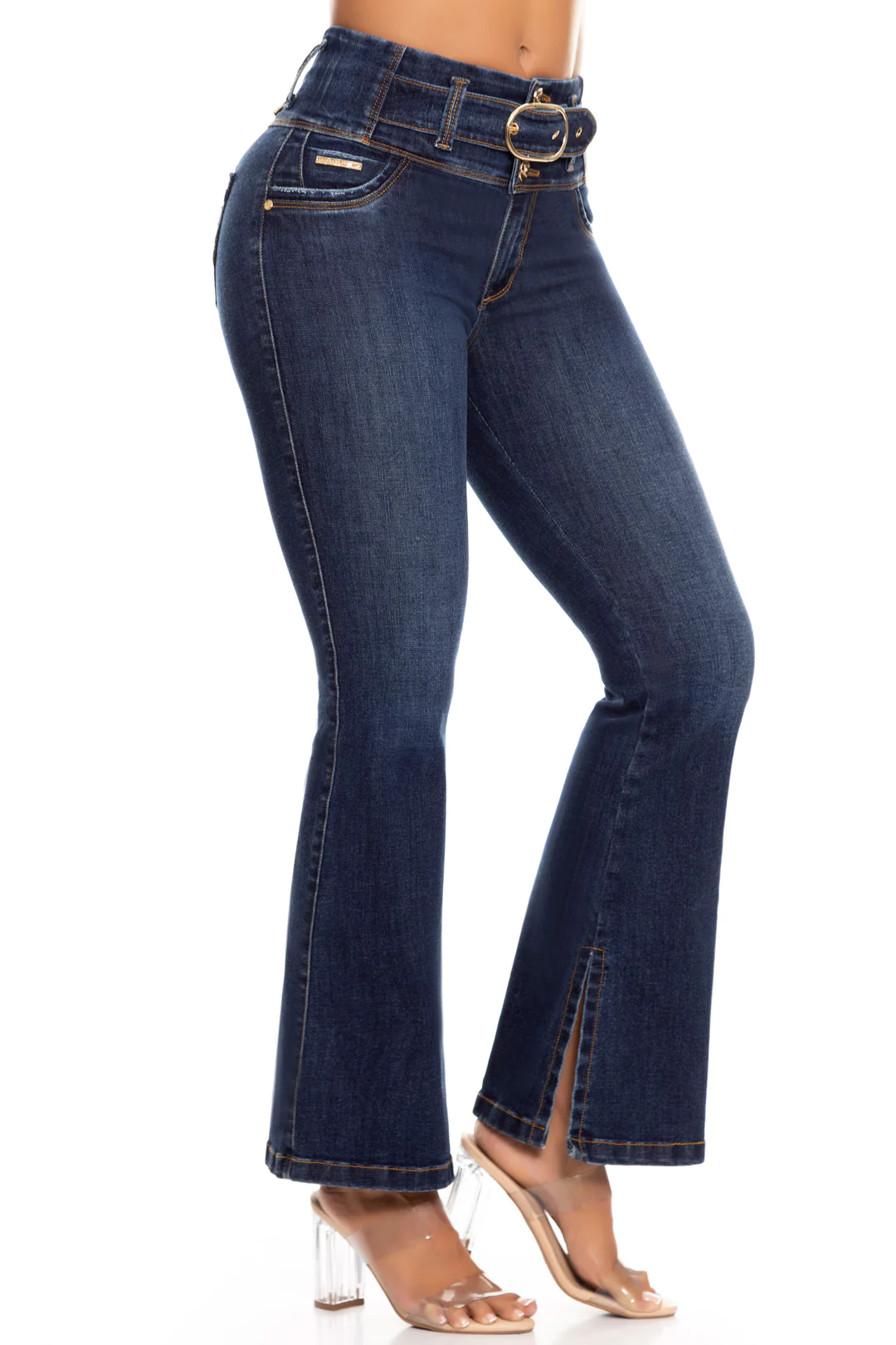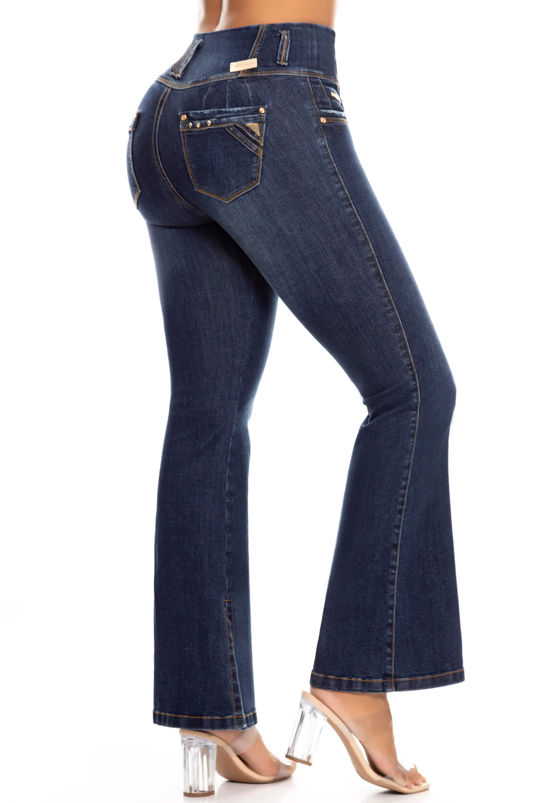 Jean bota campana, con cierre y tiro alto, azul, elaborado en índigo, con bolsillos traseros, cuenta con el mejor confort para lucir y sentirte siempre cómoda.