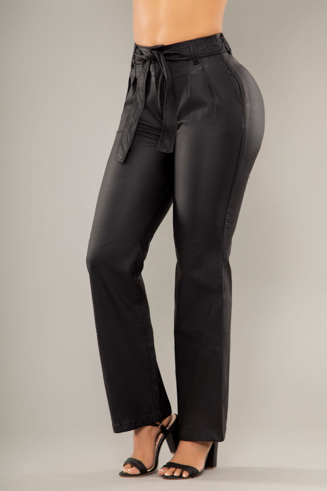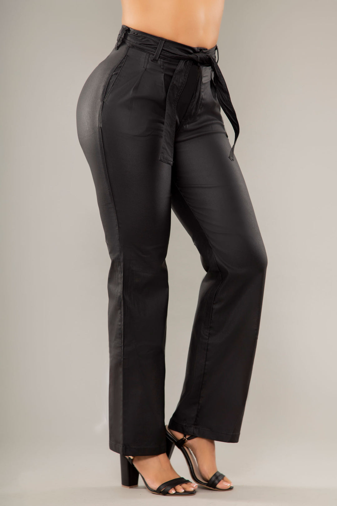 Jean bota campana, con pretina delgada de un botón, tiro medio, en color negro, elaborado en índigo efecto cuero. Sin bolsillos traseros. Cuenta con el mejor confort y horma para resaltar tu figura.